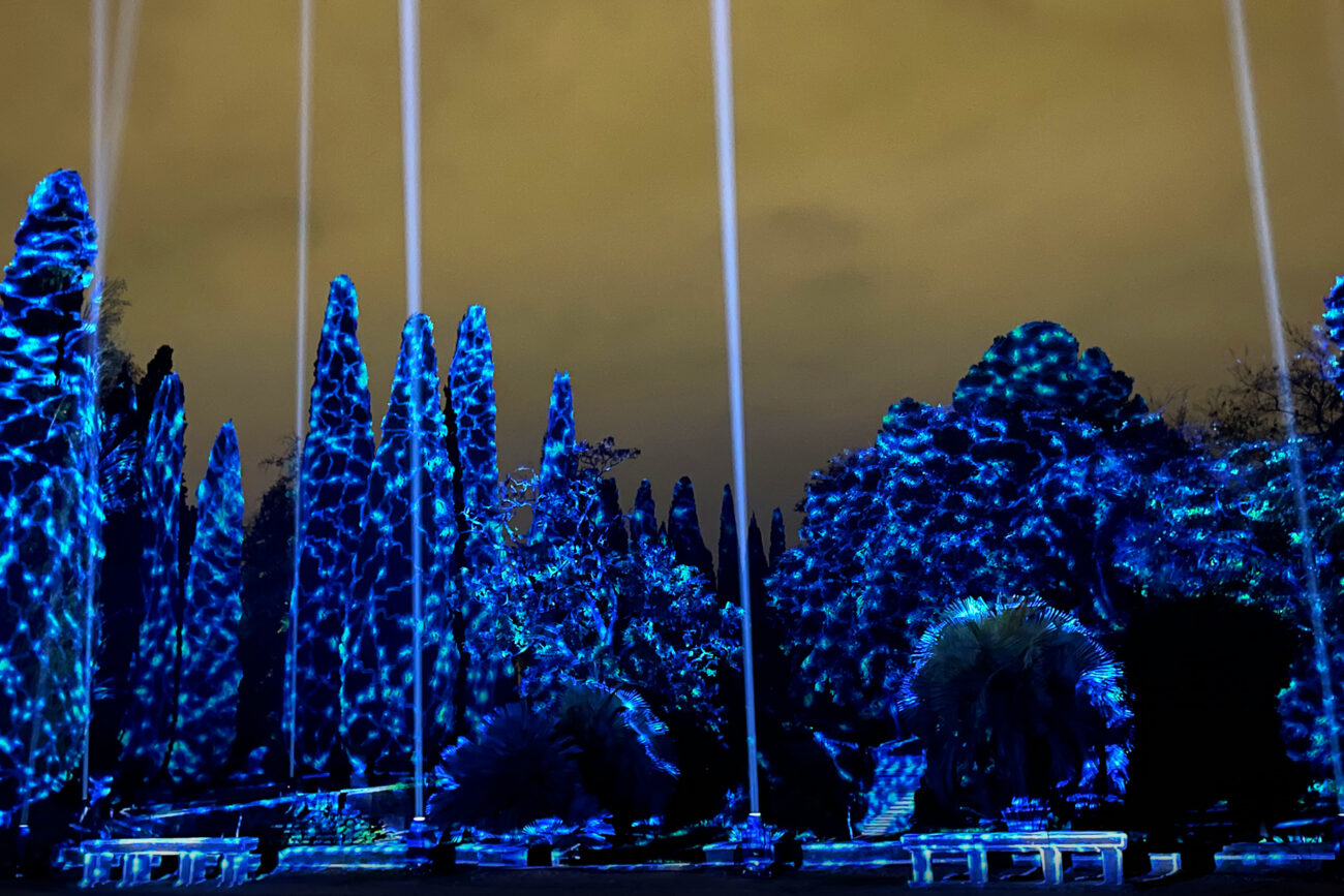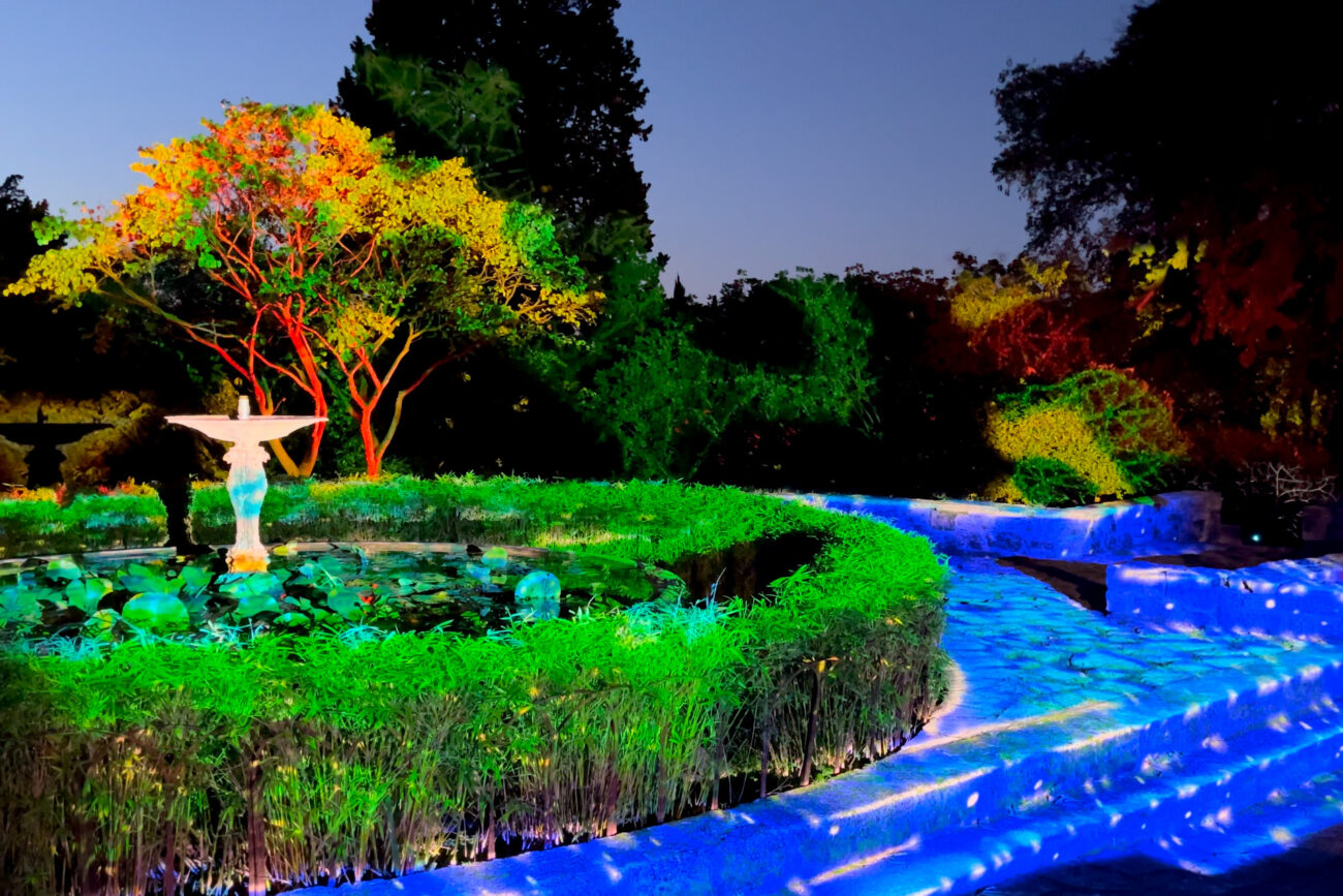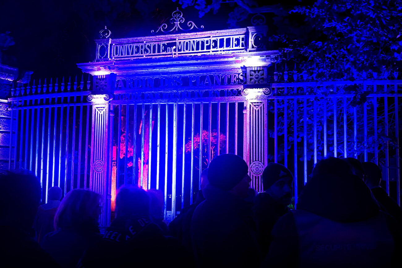 Cette nouvelle expérience lumière, inspirée par les secrets et légendes du Jardin des Plantes, nous emporte dans une balade poétique, riche en couleurs et en émotion, depuis le boulevard surplombant ce joyau montpelliérain, premier jardin botanique de France. Quinze spectacles de mise en lumière avec vidéomapping sur végétaux, laser, tulle holographique, éclairage low-tech…